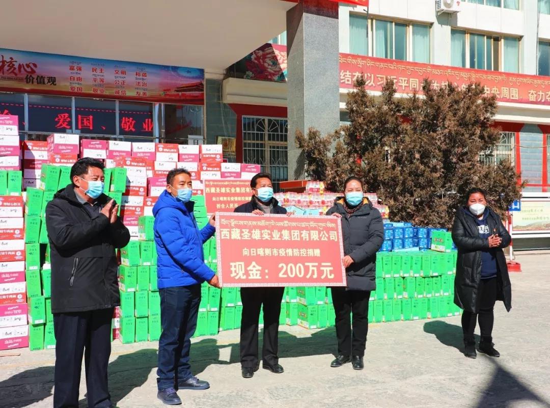 在做好集团公司自身防疫工作的同时,始终勇于担当企业的社会责任。 2020年2月3日下午在日喀则市民政局院内举行爱心捐赠仪式。参加仪式的有日喀则市委常委统战部部长巴桑、市政府副市长尼玛普赤、市工商联党组书记格桑曲珍、市民政局局长索朗旺堆等。公司董事长旦增一行代表集团公司员工向日喀则市爱心捐款现金人民币200万元和10万元人民币的物资,助力日喀则市抗击疫情一线,支持我市疫情防控工作。 多年来,公司始终坚持“服务大众健康,创新大众需求”的企业使命,公司在国家抗震救灾、疫情防控等重大事件中,始终冲锋在前,积极践行社会责任。